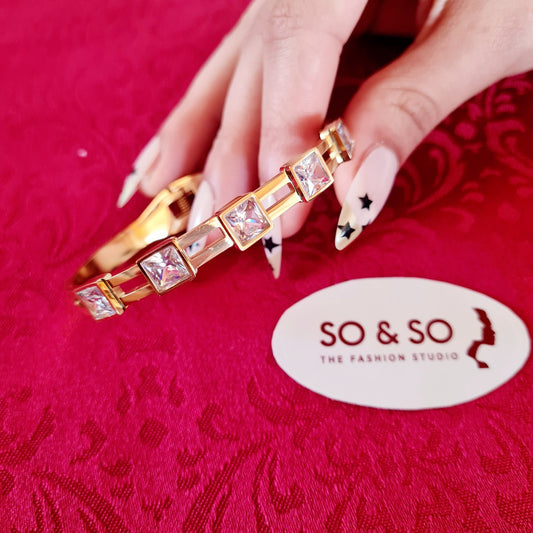 Goldenes Armband mit quadratischen Steinen
