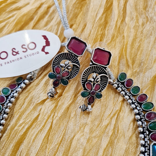 Oxidiertes Halskettenset mit Ohrringen #8307